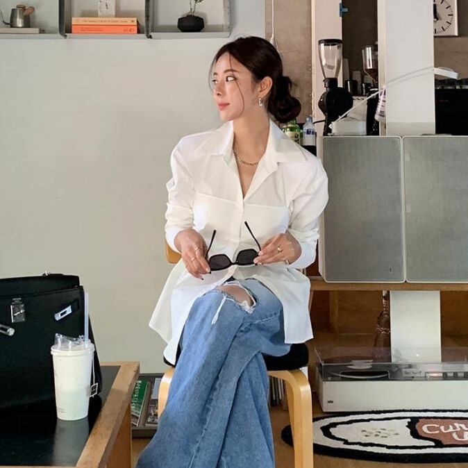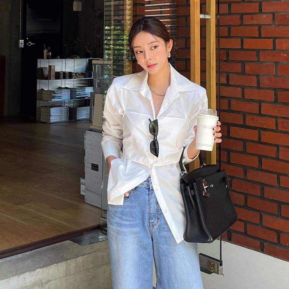 ミディアム丈のルーズフィットが今っぽい抜け感を演出し、可愛らしさとクールさのバランスが絶妙です。