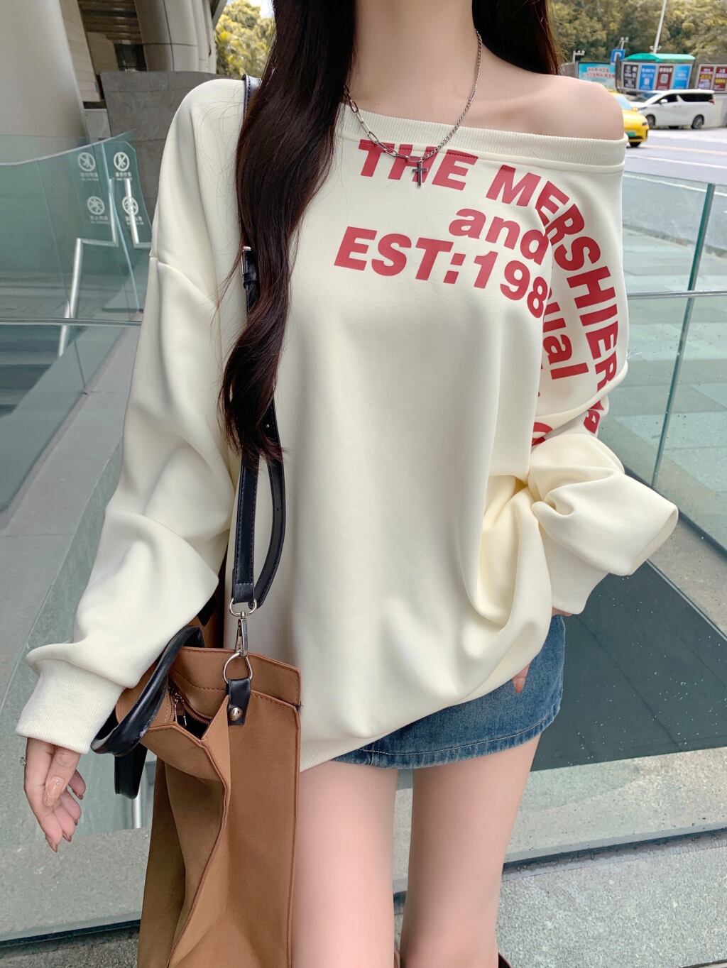 トップス トレーナー 長袖 ワンショルダー プルオーバー ミディアム丈 かわいい 大人可愛い きれいめ シンプル 上品 おしゃれ かっこいい カジュアル こなれ感 個性的 主役級 存在感 抜け感 秋 冬 ベーシック ナチュラル キュート クール メンズライク 無地 英文字 女性用 レディース ママ OL 通勤 オフィス 学生 通学 デート お出かけ お泊まり 女子会 旅行 休日 アウトドア カフェ ショッピング コンパ レストラン イベント 普段使い デイリー 着回し S M L XL トレンド モテ