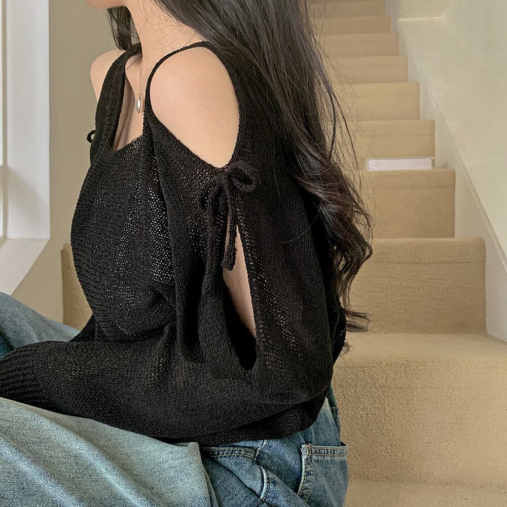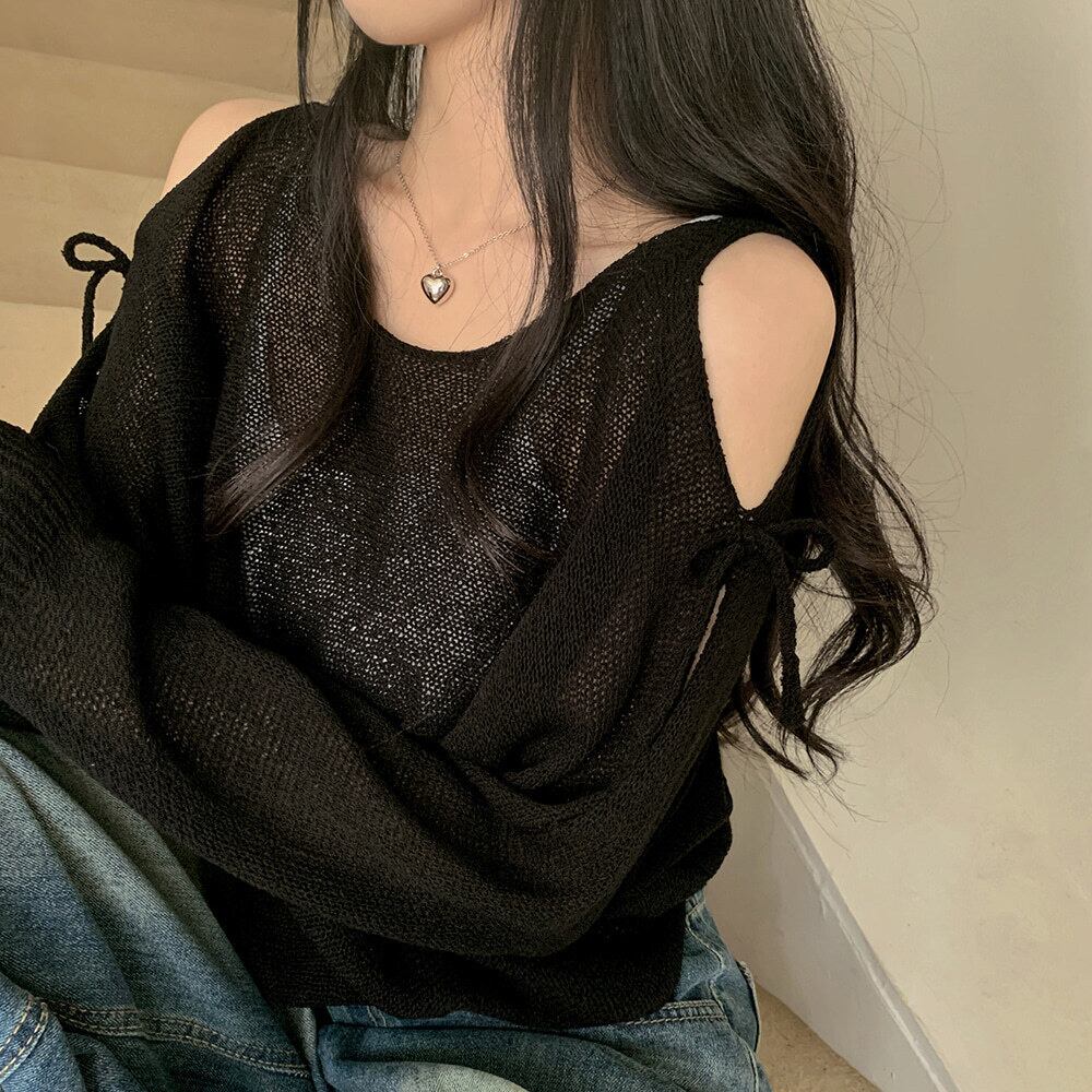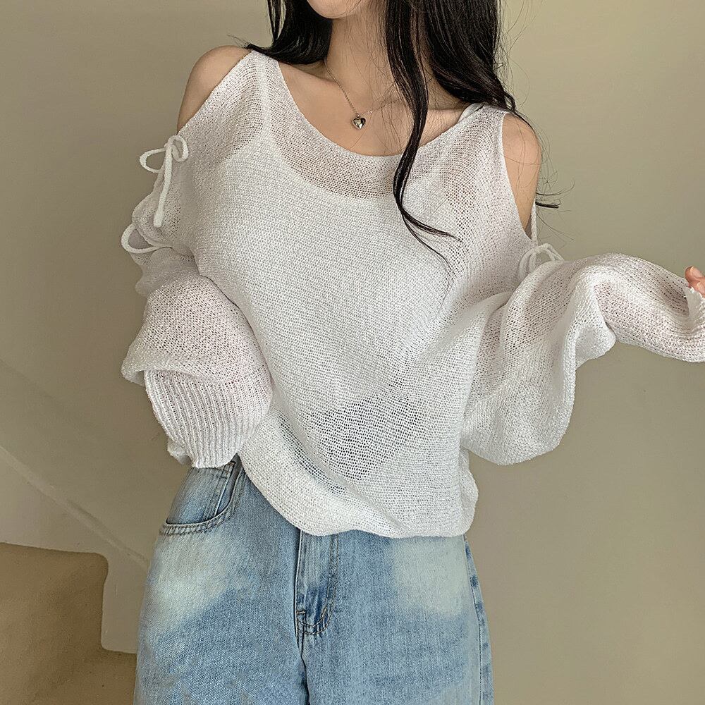 トップス セーター 長袖 ラウンドネック カットアウトデザイン 萌え袖 プルオーバー ミディアム丈 透け感 かわいい 大人可愛い きれいめ シンプル 上品 おしゃれ かっこいい カジュアル こなれ感 個性的 主役級 ルーズ 存在感 抜け感 春 夏 ベーシック ナチュラル キュート フェミニン ガーリー 無地 女性用 レディース ママ OL 通勤 オフィス 学生 通学 デート お出かけ お泊まり 女子会 旅行 休日 カフェ ショッピング コンパ レストラン イベント 普段使い デイリー 着回し S M L
