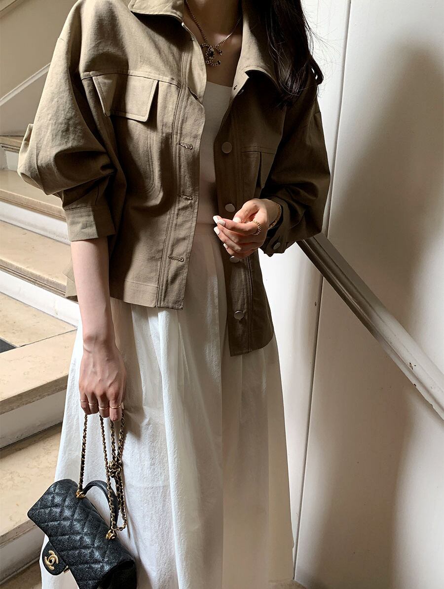 襟付きのこの一枚は、デイリーコーデに華やかさをプラスしてくれます。