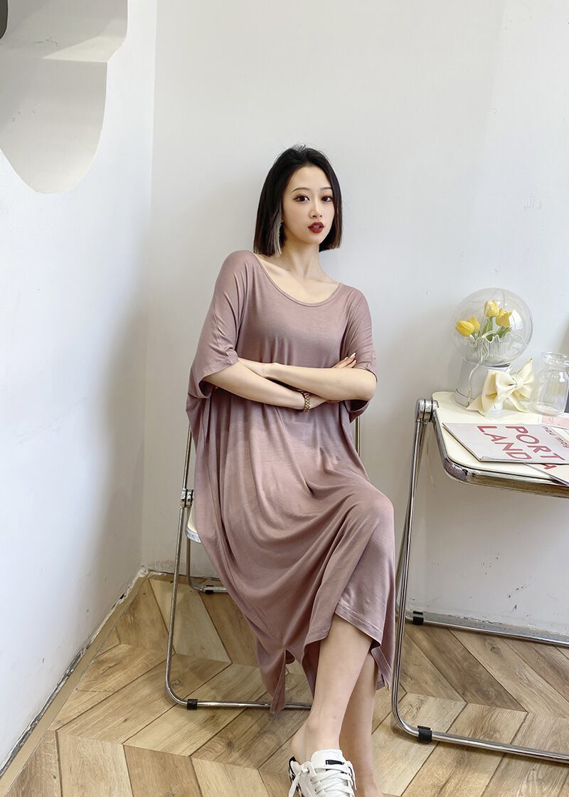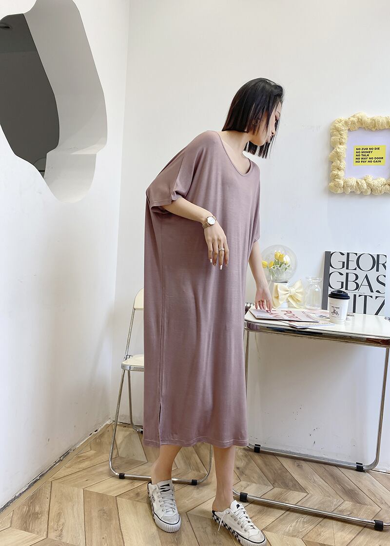 シンプルで上品な印象のミディアム丈Tシャツワンピースです。