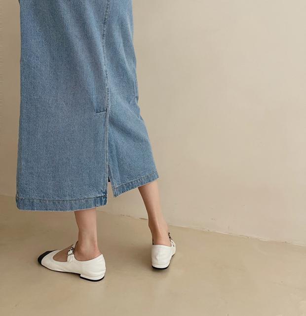 大人可愛いミモレ丈デニムワンピース