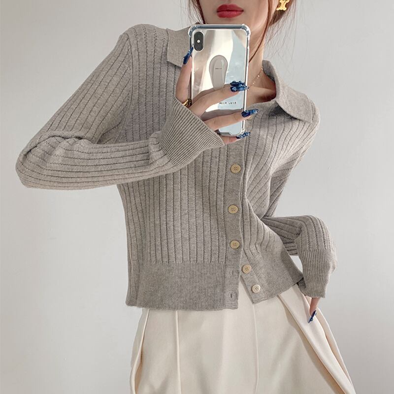 トップス カーディガン 長袖 襟付き ポロカラー 前開き ボタン ショート丈 かわいい 大人可愛い きれいめ シンプル 上品 おしゃれ かっこいい カジュアル こなれ感 個性的 主役級 きちんと 存在感 抜け感 春 秋 冬 ベーシック ナチュラル キュート フェミニン 清楚 女性用 レディース ママ OL 通勤 オフィス 学生 通学 デート お出かけ お泊まり 女子会 旅行 休日 アウトドア カフェ ショッピング コンパ レストラン イベント 普段使い デイリー 着回し S M L トレンド モテ