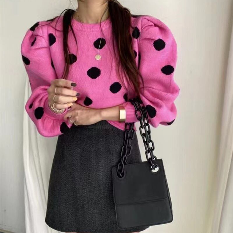 トップス セーター 長袖 パフスリーブ マトンスリーブ ラウンドネック プルオーバー ミディアム丈 かわいい 大人可愛い きれいめ シンプル 上品 おしゃれ かっこいい カジュアル こなれ感 個性的 主役級 きちんと 存在感 抜け感 秋 冬 ベーシック ナチュラル キュート ドット柄 女性用 レディース ママ OL 通勤 オフィス 学生 通学 デート お出かけ お泊まり 女子会 旅行 休日 アウトドア カフェ ショッピング コンパ レストラン イベント 普段使い デイリー 着回し 重ね着 ワンサイズ