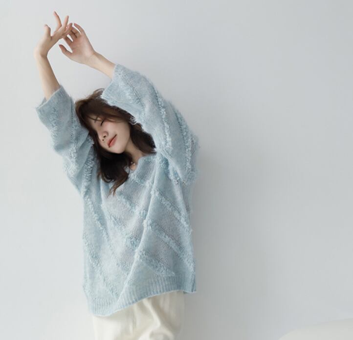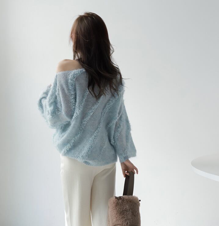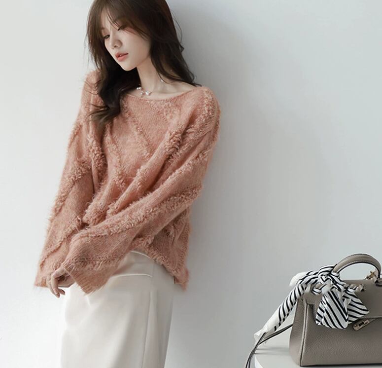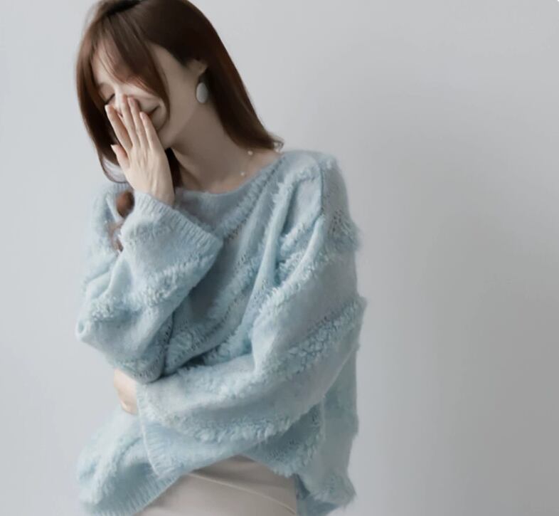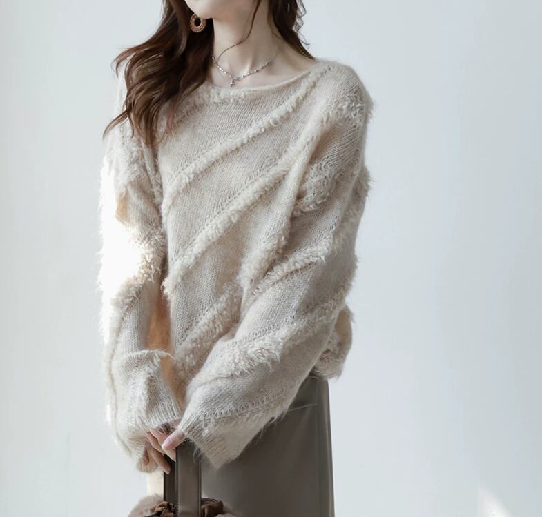 ふわふわとした柔らかい素材感で、普段使いからデートやお出かけまで幅広いシーンで大活躍するオシャレなニットセーター!