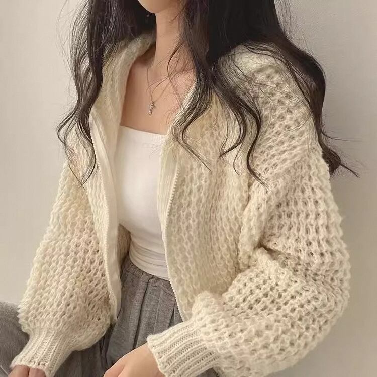 トップス フーディー パーカー 長袖 前開き ファスナー ショート丈 ボリューム袖 透かし編み かわいい 大人可愛い きれいめ シンプル 上品 おしゃれ かっこいい カジュアル こなれ感 個性的 主役級 存在感 抜け感 春 秋 ベーシック ナチュラル キュート フェミニン 無地 女性用 レディース ママ OL 通勤 オフィス 学生 通学 デート お出かけ お泊まり 女子会 旅行 休日 アウトドア カフェ ショッピング コンパ レストラン イベント 普段使い デイリー 着回し 重ね着 ワンサイズ モテ