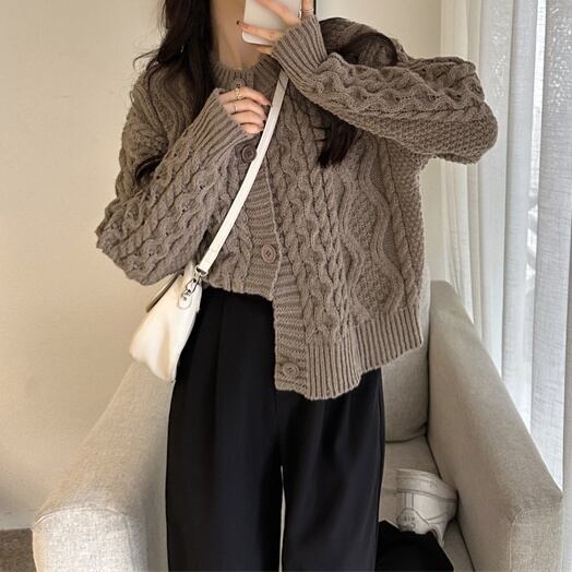 秋冬の暖かさを重視しながらも、大人可愛い印象を与えるこのカーディガンは、あなたのワードローブに必須のアイテムです。