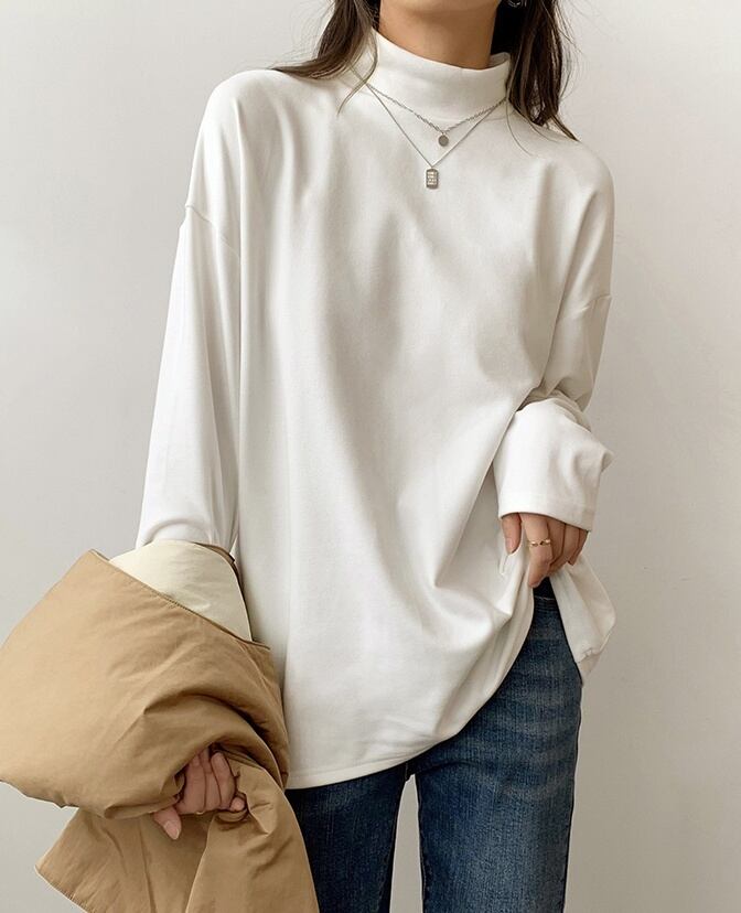 トップス カットソー 長袖 タートルネック プルオーバー ミディアム丈 かわいい 大人可愛い きれいめ シンプル 上品 おしゃれ かっこいい カジュアル こなれ感 個性的 主役級 存在感 ラフ 抜け感 ベーシック ナチュラル キュート メンズライク 無地 女性用 レディース ママ OL 通勤 オフィス ビジネス 学生 通学 デート お出かけ お泊まり 女子会 旅行 休日 アウトドア カフェ ショッピング イベント 普段使い デイリー 着回し 重ね着 レイヤード M L XL トレンド モテ 定番アイテム