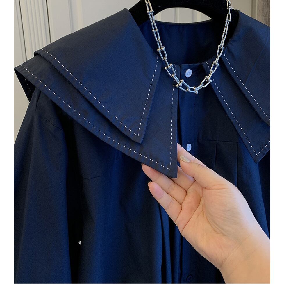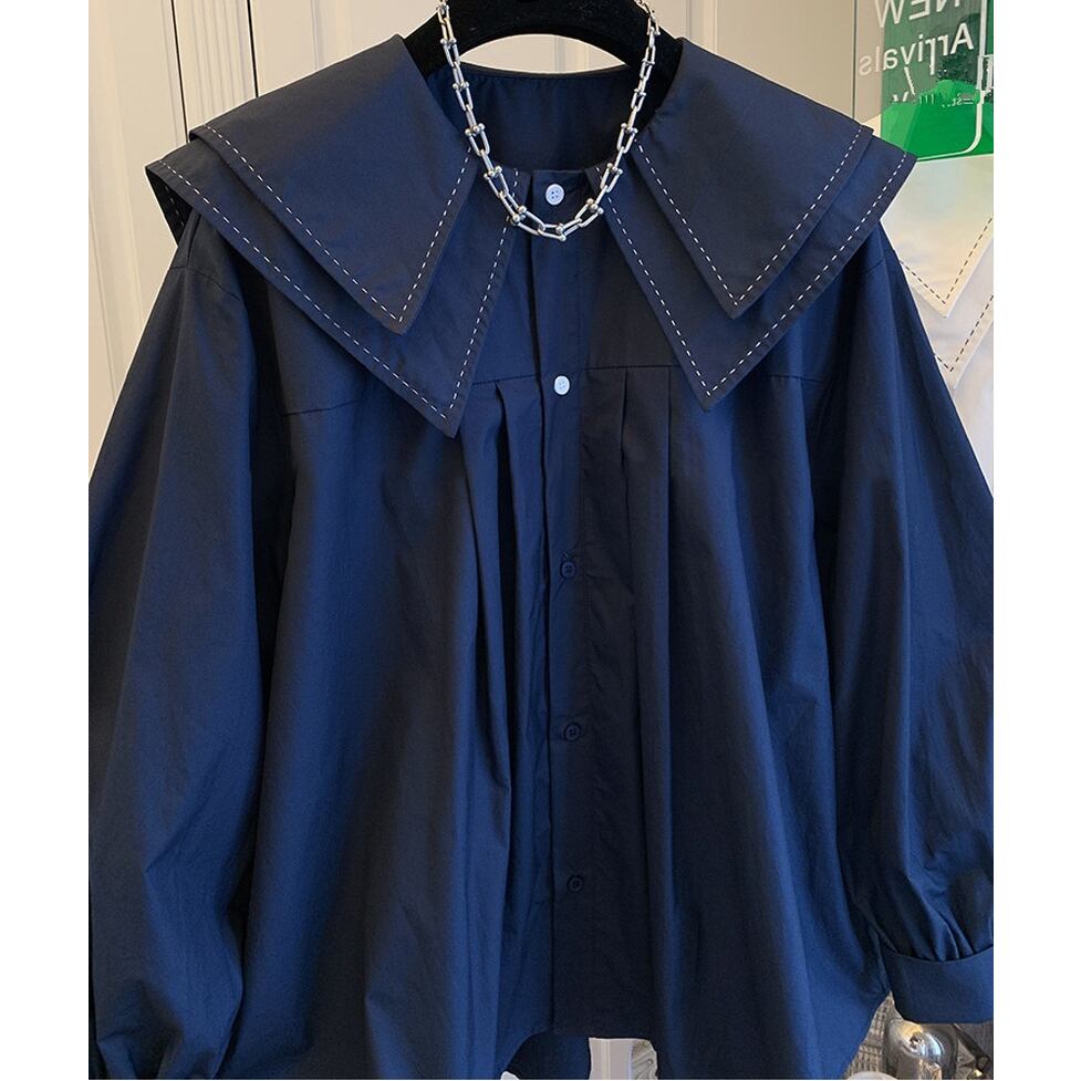 トップス シャツ ブラウス ダブルカラーシャツ 長袖シャツ ダブルカラーブラウス 長袖ブラウス タック 襟付き 長袖 バルーンスリーブ フレア ワイド 無地 ステッチカラー オーバーサイズ レディース かわいい 大人可愛い おしゃれ こなれ感 ガーリー エレガント 主役級 存在感 キュート きれいめ 上品 シンプル カジュアル クラシカル カレッジ風 学生風 個性的 とろみ感 抜け感 通勤 通学 デート お出かけ 女子会 休日 ショッピング 体型カバー ゆったり フェミニン