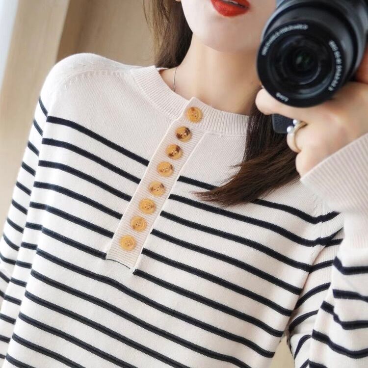 レディース トップス ニット セーター プルオーバー 長袖 ラウンドネック ボタン かわいい 大人可愛い きれいめ シンプル カジュアル 上品 おしゃれ かっこいい レトロ こなれ感 ラフ メンズライク マニッシュ ボーイッシュ エレガント 抜け感 キュート クラシカル ベーシック ナチュラル ボーダー 秋 冬 ママ お出かけ 旅行 休日 ショッピング カフェ 重ね着 普段使い 着回し 流行 定番 S M L XL 2XL 小さいサイズ 大きいサイズ 白 ホワイト 黒 ブラック オフホワイト 緑 グリーン