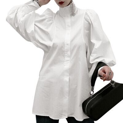 トップス シャツ 長袖 ボリューム袖 マトンスリーブ ハイネック 前開き ボタン ミディアム丈 かわいい 大人可愛い きれいめ シンプル 上品 おしゃれ かっこいい カジュアル こなれ感 個性的 主役級 存在感 抜け感 春 夏 ベーシック ナチュラル クール エレガント フォーマル 無地 女性用 レディース ママ OL 通勤 オフィス 学生 通学 デート お出かけ お泊まり 女子会 旅行 休日 カフェ ショッピング アウトドア イベント 普段使い デイリー 着回し 重ね着 S M L XL トレンド