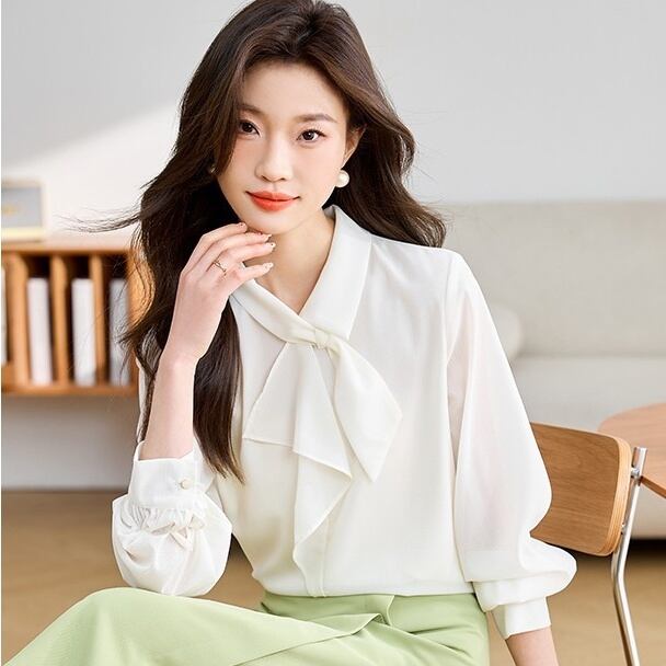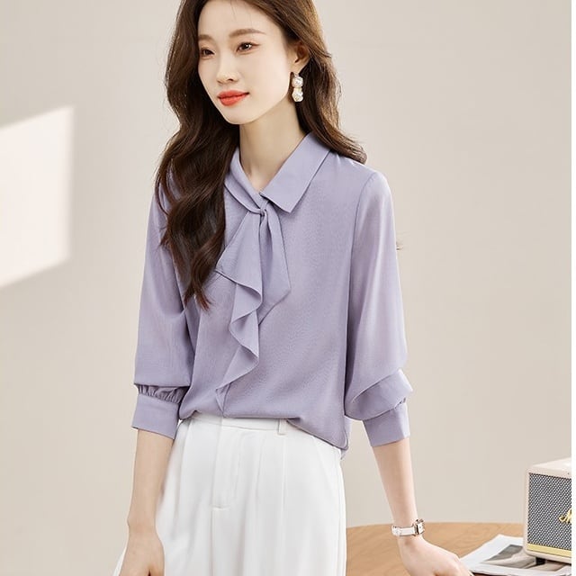 トップス シャツ 長袖 襟付き ボウタイ フリル プルオーバー ミディアム丈 かわいい 大人可愛い きれいめ シンプル 上品 おしゃれ かっこいい カジュアル こなれ感 個性的 主役級 存在感 抜け感 オールシーズン ベーシック ナチュラル フォーマル エレガント 無地 女性用 レディース ママ OL 通勤 オフィス ビジネス 学生 通学 デート お出かけ お泊まり 女子会 旅行 休日 カフェ ショッピング ディナー イベント 普段使い デイリー 着回し 重ね着 S M L XL トレンド モテ