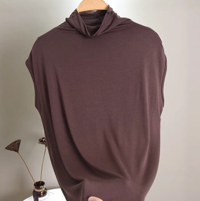 とろみ感のあるハイネックが上品さと抜け感を演出。