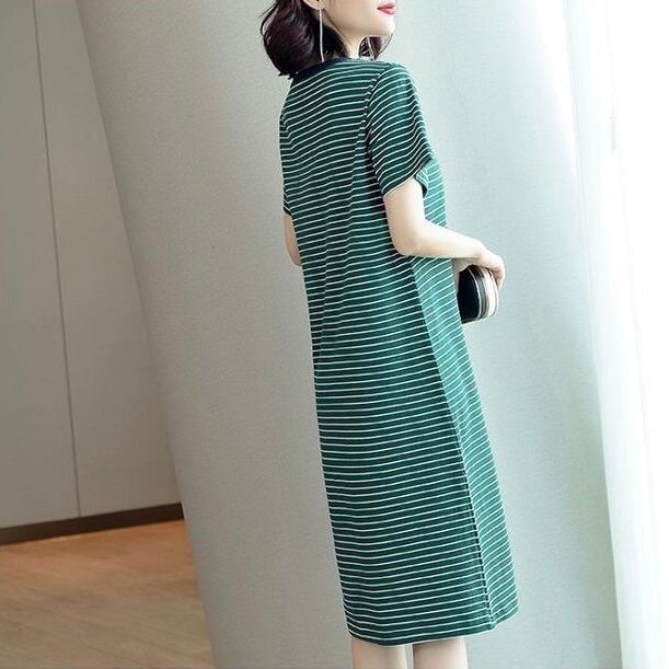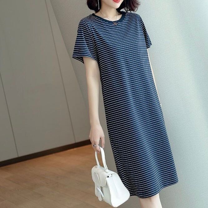 レディース ワンピース フレア 膝丈 膝下 半袖 ラウンドネック ストレート フェミニン ストリート かわいい 大人可愛い シンプル カジュアル おしゃれ かっこいい レトロ こなれ感 ラフ ガーリー ルーズ クール ラブリー キュート ベーシック アメリカン プレッピー アクティブ ナチュラル ボーダー 夏 お出かけ 休日 韓国 オルチャン 体型カバー 普段使い 着回し トレンド 流行 定番 M L XL 2XL 3XL 大きいサイズ ビッグ ゆったり ゆる ブルー レッド バイカラー 緑 グリーン