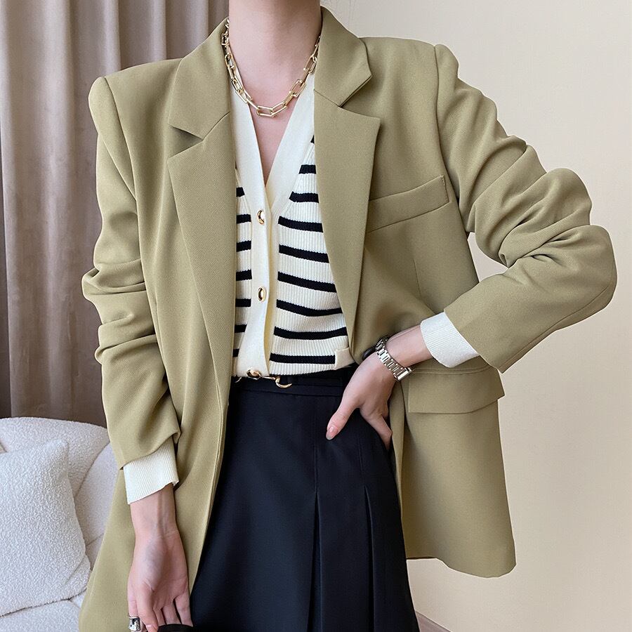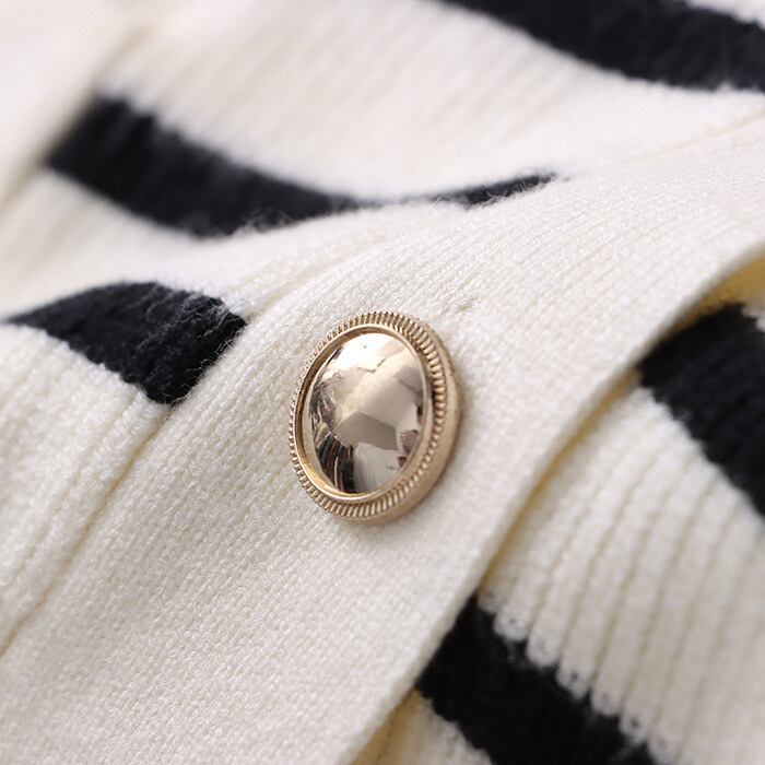 また、ゴールドボタンがさりげなく華やかさをプラスしてくれます。