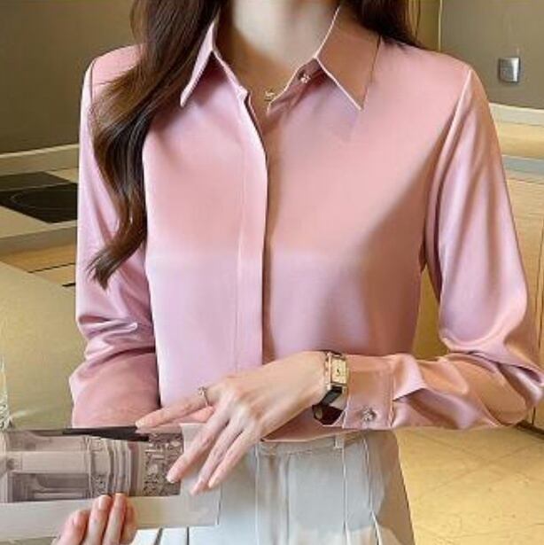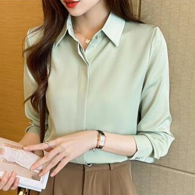 レディース トップス シャツ ブラウス 長袖 Vネック 襟付き 角襟 フェミニン 前開き サテン きれいめ シンプル 上品 おしゃれ レトロ こなれ感 クール エレガント フォーマル 無地 春 秋 入学式 入園式 卒業式 卒園式 冠婚葬祭 授業参観 MTG オフィス ビジネス 通勤 重ね着 普段使い 着回し 定番 S M L XL 2XL 3XL 小さいサイズ 大きいサイズ ビッグ ゆったり ゆる 白 ホワイト 黒 ブラック 茶色 ブラウン グレー 黄色 イエロー ピンク 水色 ブルー 光沢 緑 グリーン