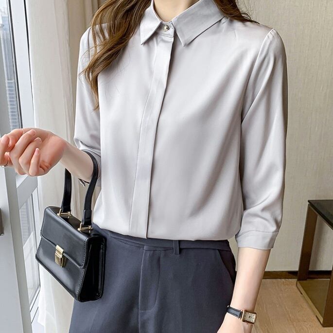 上品な光沢感が魅力のサテンシャツで洗練された大人の装いに。
