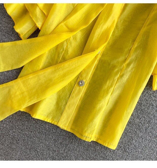 鮮やかなビビッドカラーが魅力のフレアスリーブブラウス。