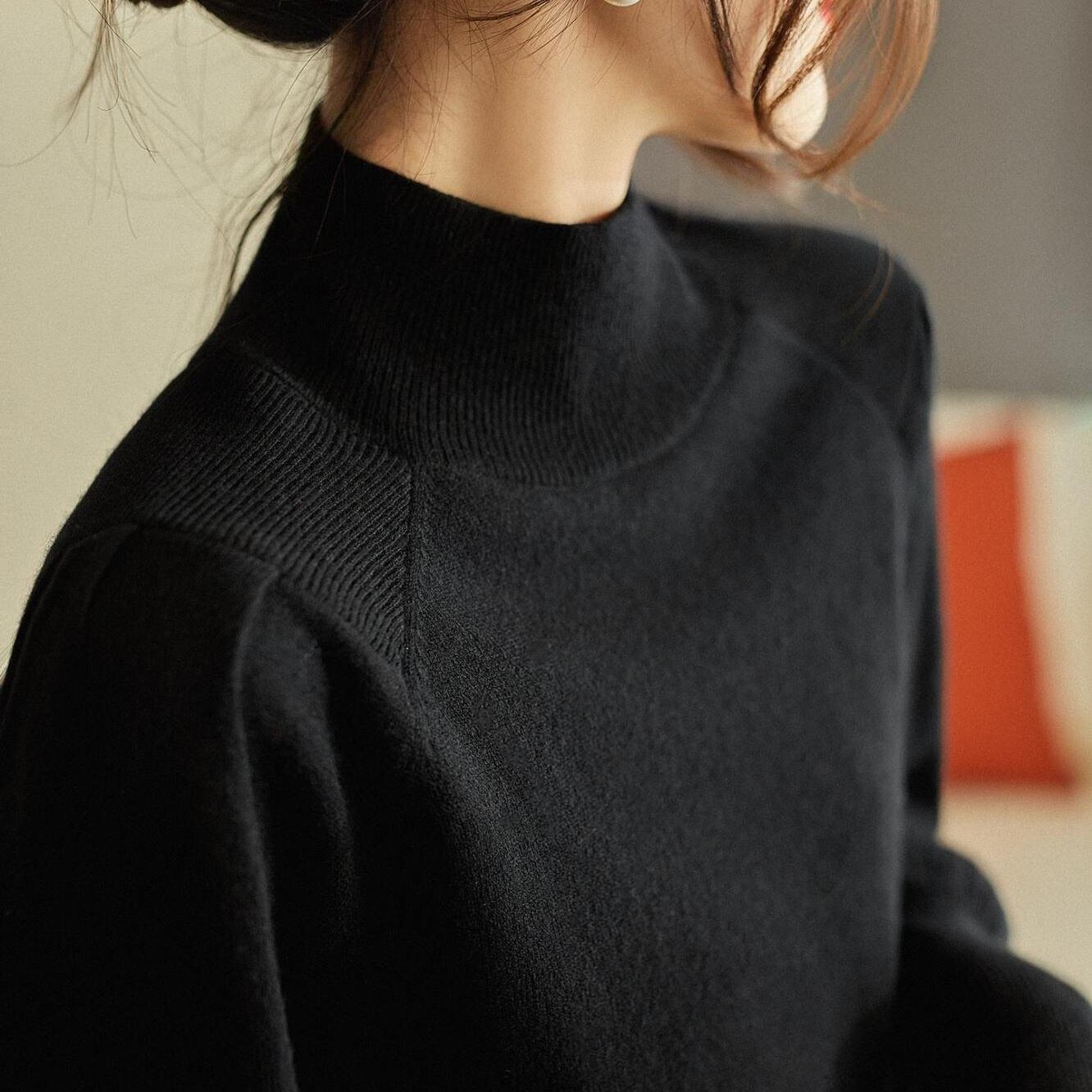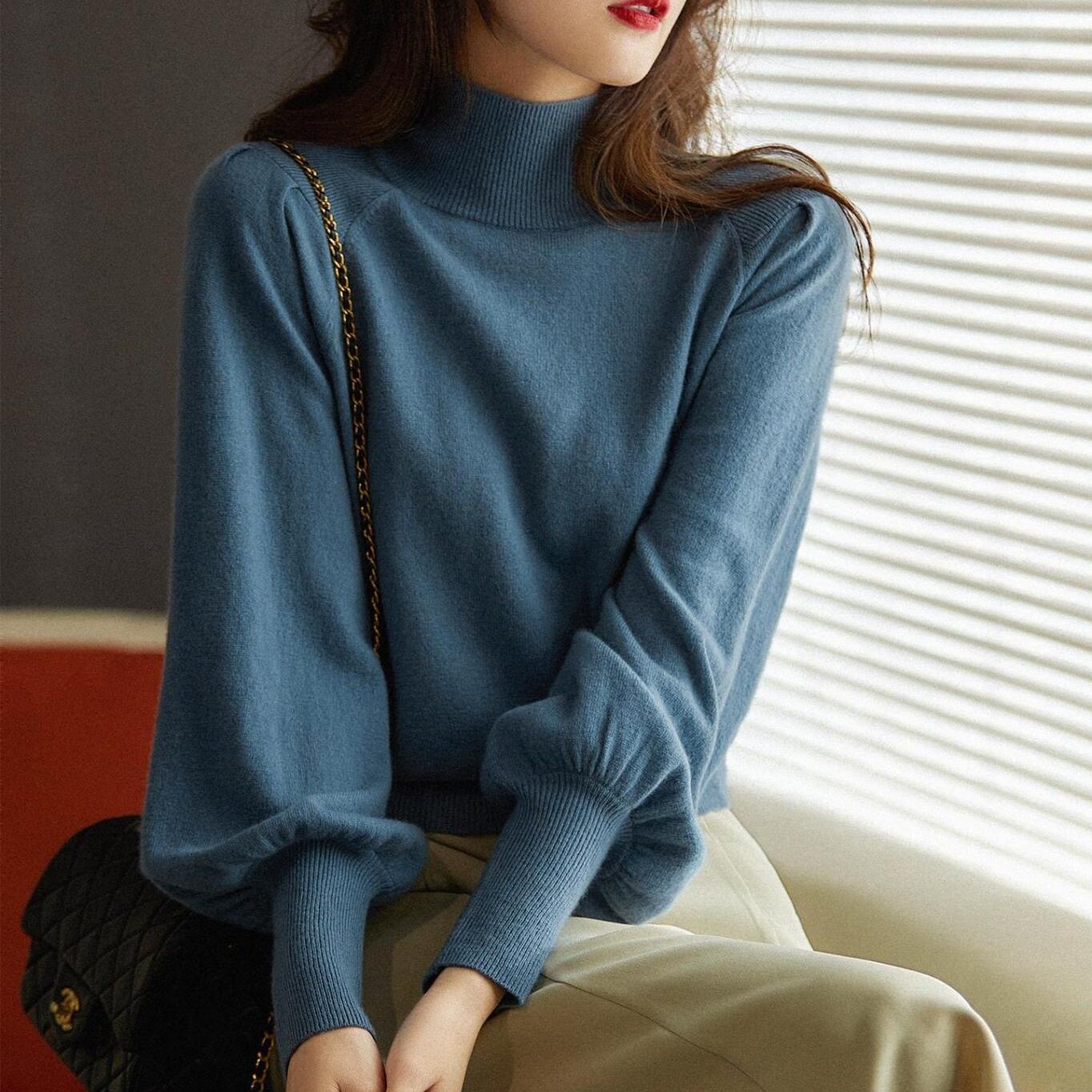 ハイネックとマトンスリーブで、シンプルながらも上品な存在感を放ちます。