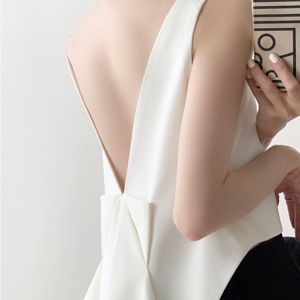 レディース トップス カットソー プルオーバー アシンメトリー 袖なし ノースリーブ ラウンドネック 背中開き フェミニン タック タックプリーツ リボン バックリボン バックコンシャス かわいい 大人可愛い きれいめ シンプル おしゃれ かっこいい こなれ感 ガーリー 個性的 クール モード系 エレガント モダン 主役級 存在感 抜け感 ラブリー キュート 都会的 ラグジュアリー ロマンティック 無地 夏 お出かけ パーティー イベント 旅行 休日 トレンド 流行 インスタ映え S M L 白 ホワイト