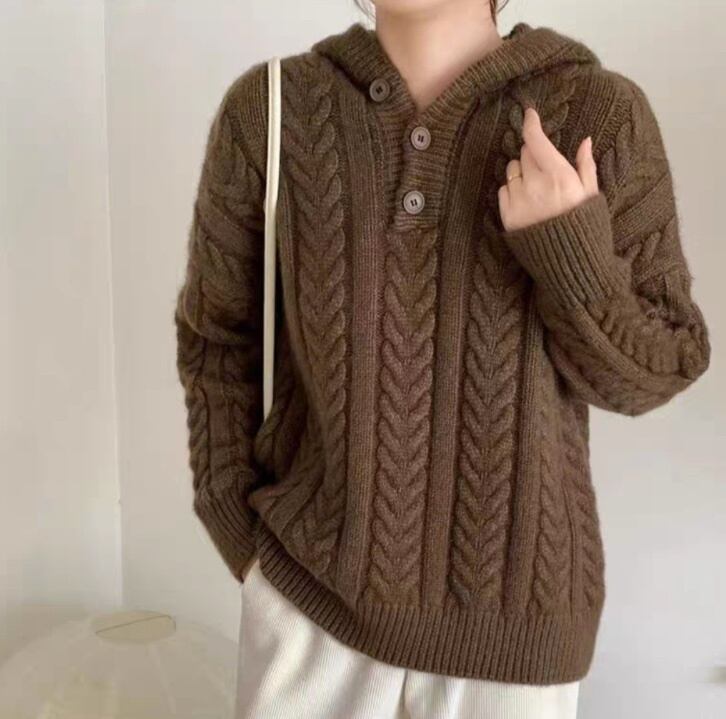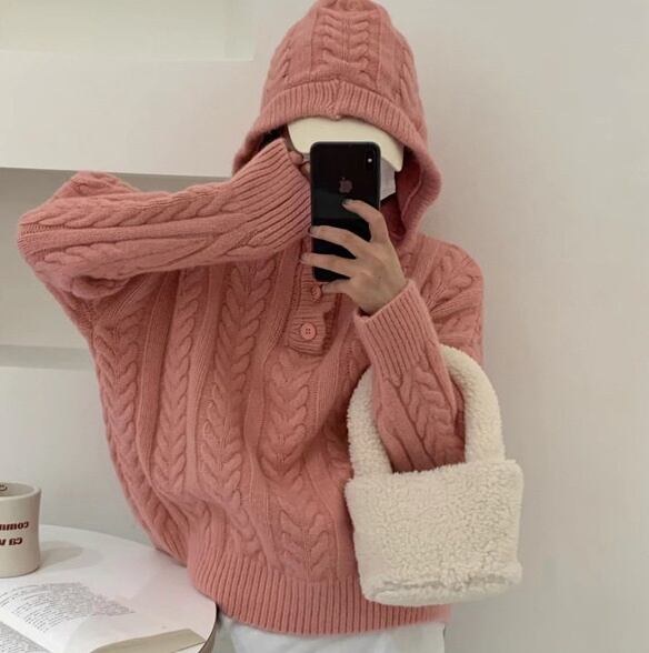 レディース トップス ニット セーター プルオーバー 長袖 Vネック フード フェミニン ストリート ケーブルニット ボタン かわいい 大人可愛い シンプル カジュアル おしゃれ かっこいい レトロ こなれ感 メンズライク ガーリー 抜け感 ヴィンテージ ラブリー キュート ベーシック カントリー アクティブ ナチュラル 秋 冬 お出かけ アウトドア 休日 カフェ 重ね着 暖かい 防寒 着回し レイヤード 定番 フリーサイズ 白 ホワイト 黒 ブラック 茶色 ブラウン オフホワイト ピンク 緑 グリーン