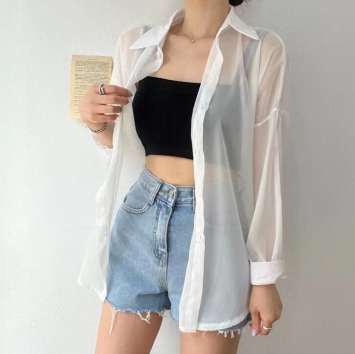 ふんわりシースルーで軽やかに魅せる大人の羽織りシャツ。