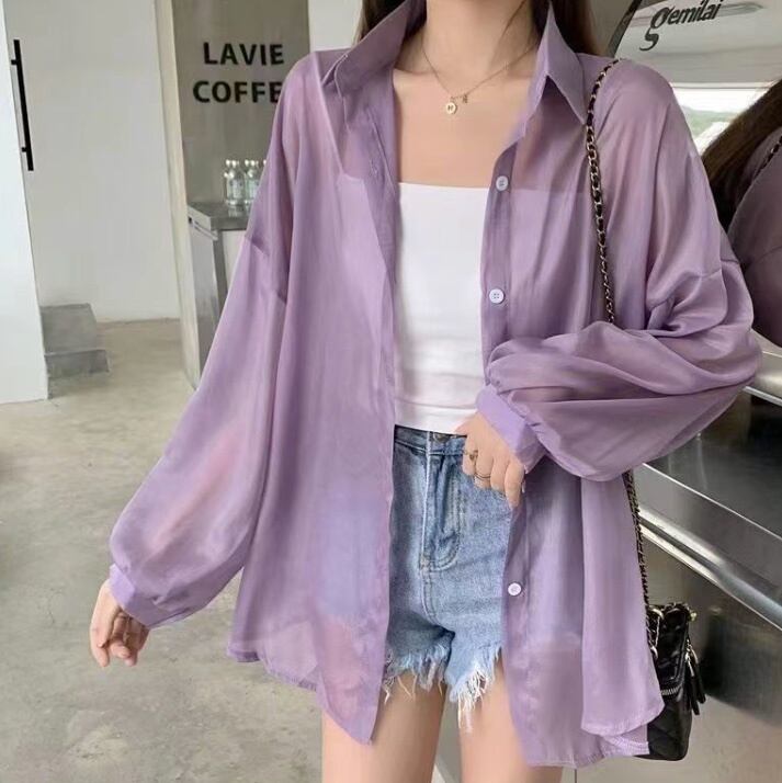 レディース トップス シャツ ブラウス 羽織 前開き 長袖 襟付き 角襟 フェミニン ストリート シフォン 透け感 シースルー かわいい 大人可愛い きれいめ シンプル カジュアル 上品 おしゃれ かっこいい レトロ こなれ感 抜け感 ベーシック 無地 春 夏 お出かけ リゾート 旅行 ビーチ 休日 バカンス 重ね着 普段使い 着回し レイヤード 定番 フリーサイズ 白 ホワイト 黒 ブラック 紫 グレー 黄色 イエロー ベージュ ピンク オレンジ 水色 ブルー 緑 グリーン パープル ライトグリーン