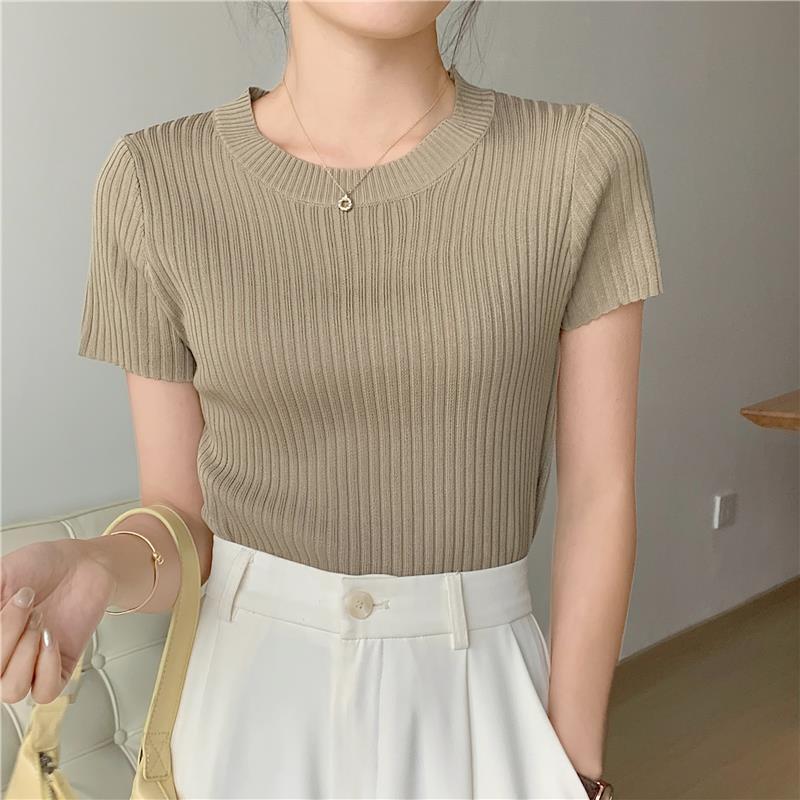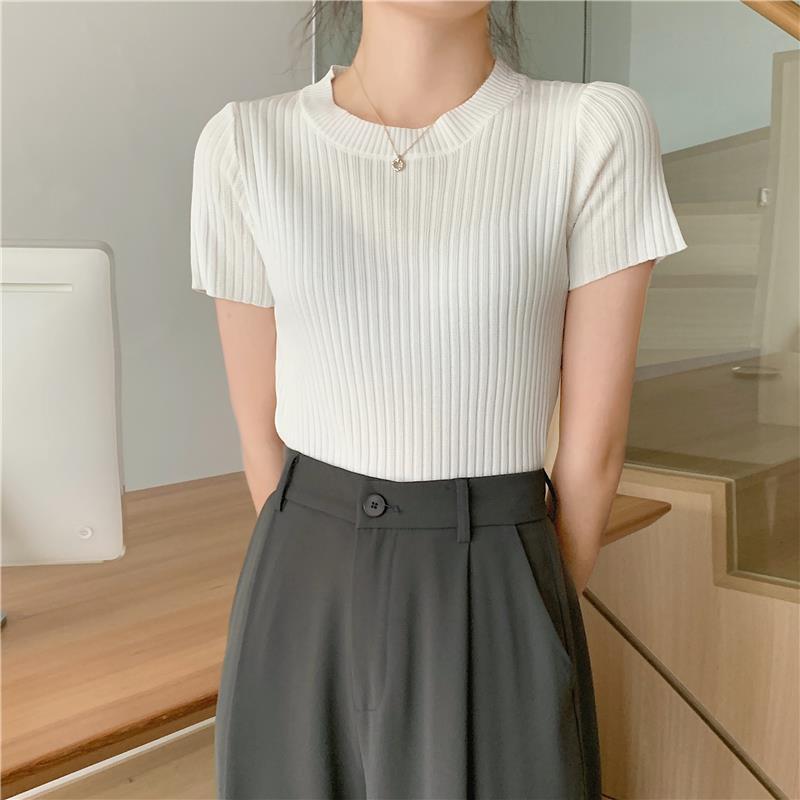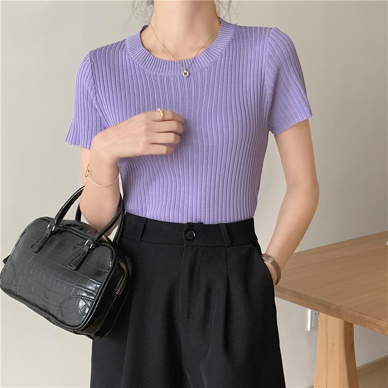 レディース トップス サマーセーター サマーニット 半袖 ラウンドネック タイト スリム 細身 スマート フェミニン リブニット かわいい 大人可愛い きれいめ シンプル 上品 おしゃれ レトロ ガーリー エレガント 抜け感 ラブリー キュート ベーシック アクティブ ロマンティック ナチュラル 無地 デート お出かけ イベント リゾート 女子会 休日 韓国 オルチャン 普段使い 着回し 清楚 定番 フリーサイズ 白 ホワイト 黒 ブラック 紫 グレー 黄色 イエロー ベージュ 水色 ブルー 緑 グリーン