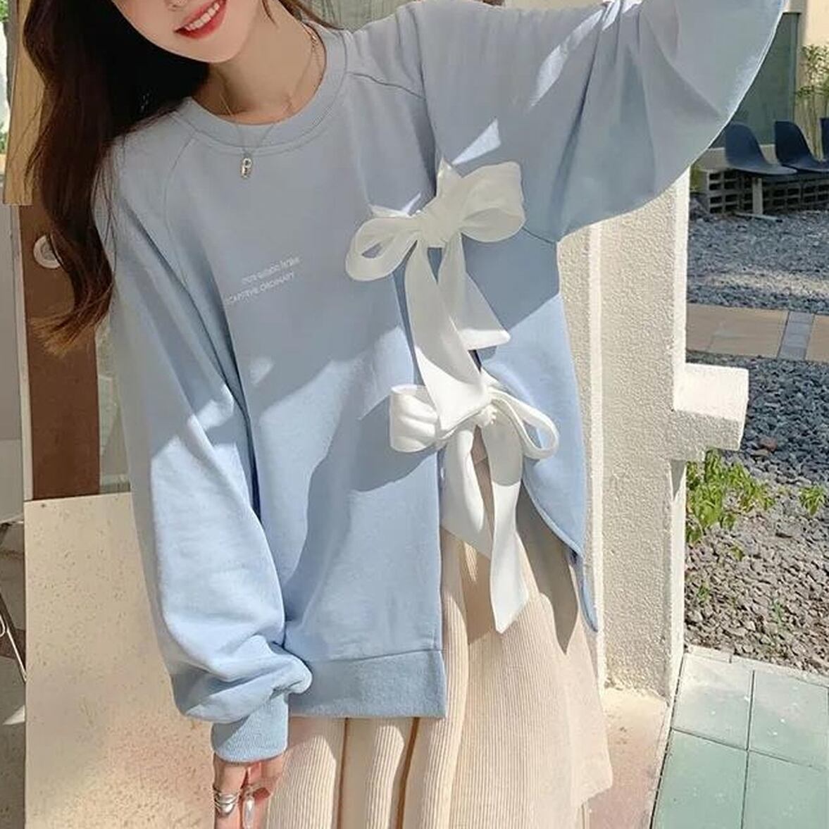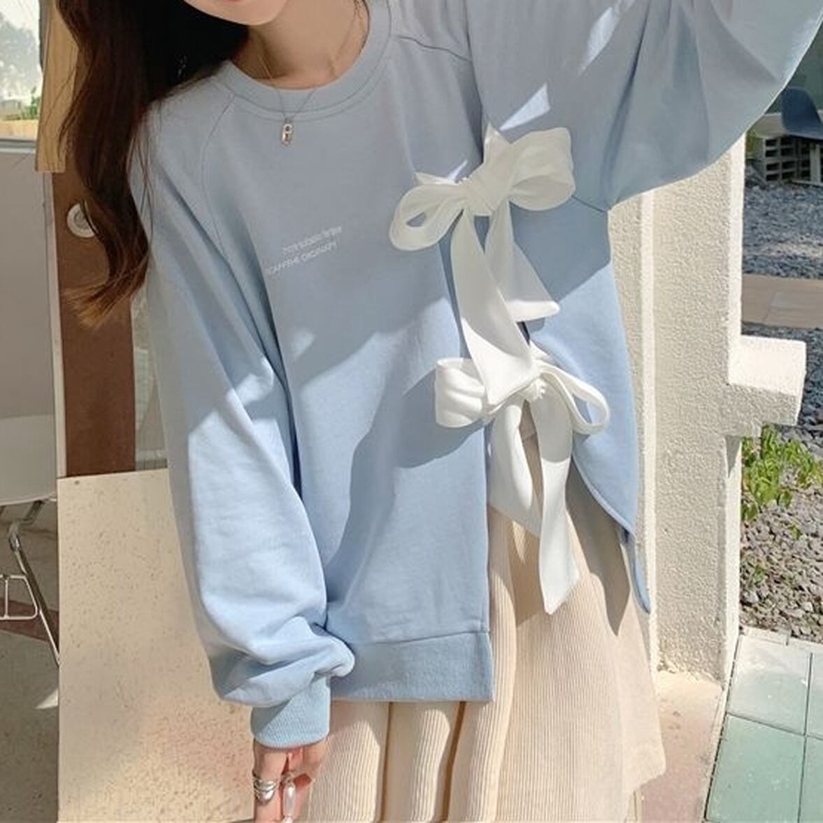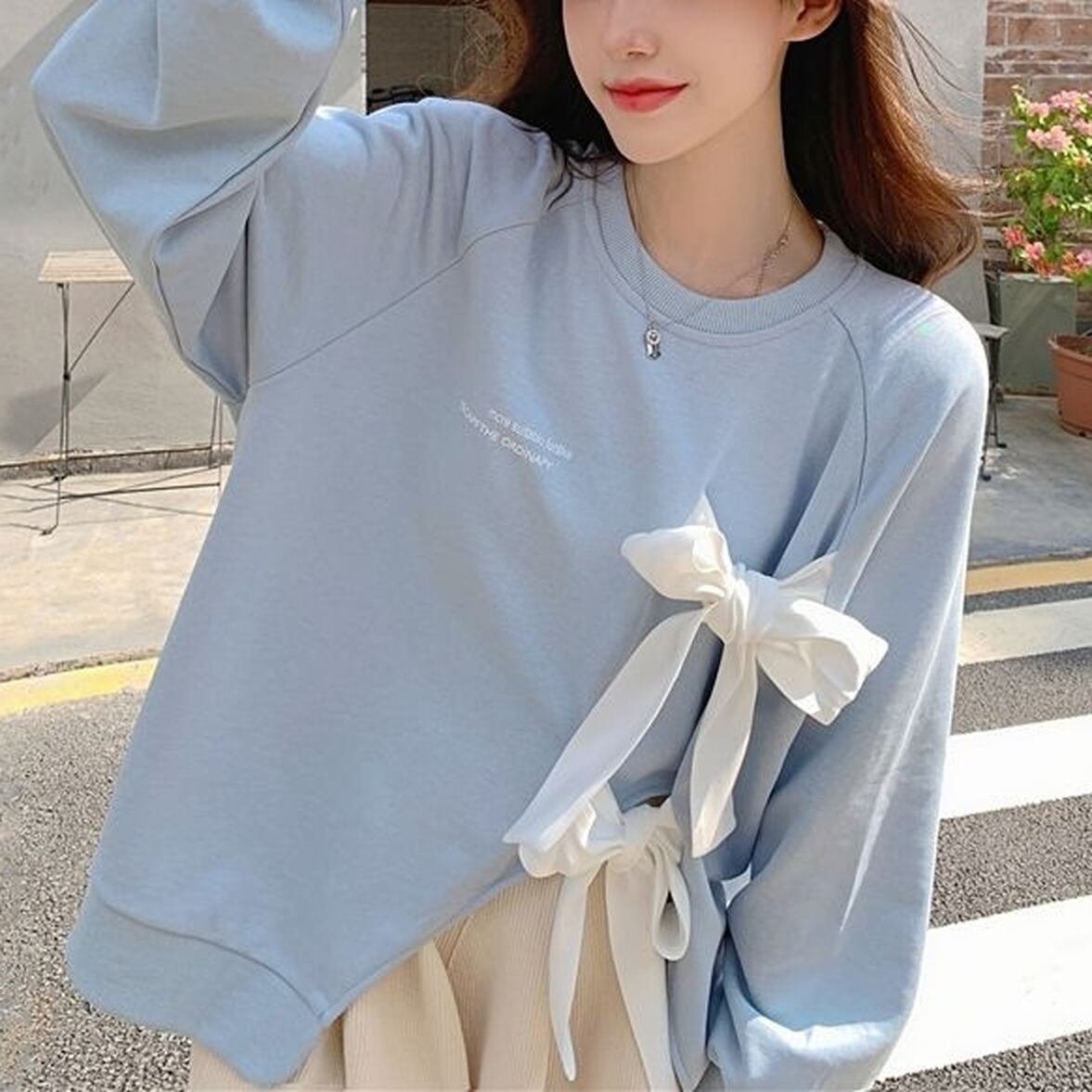 トップス スウェット プルオーバー トレーナー リボン付きスウェット リボンスリットスウェット ラウンドネック リボン 長袖 ビッグリボン ロゴ 無地 バイカラー レディース かわいい 大人可愛い おしゃれ こなれ感 ガーリー エレガント 主役級 存在感 キュート きれいめ 上品 カジュアル 個性的 抜け感 レトロ ラブリー ロマンティック 通勤 通学 デート お出かけ イベント パーティー 旅行 女子会 休日 ショッピング 体型カバー ゆったり フェミニン