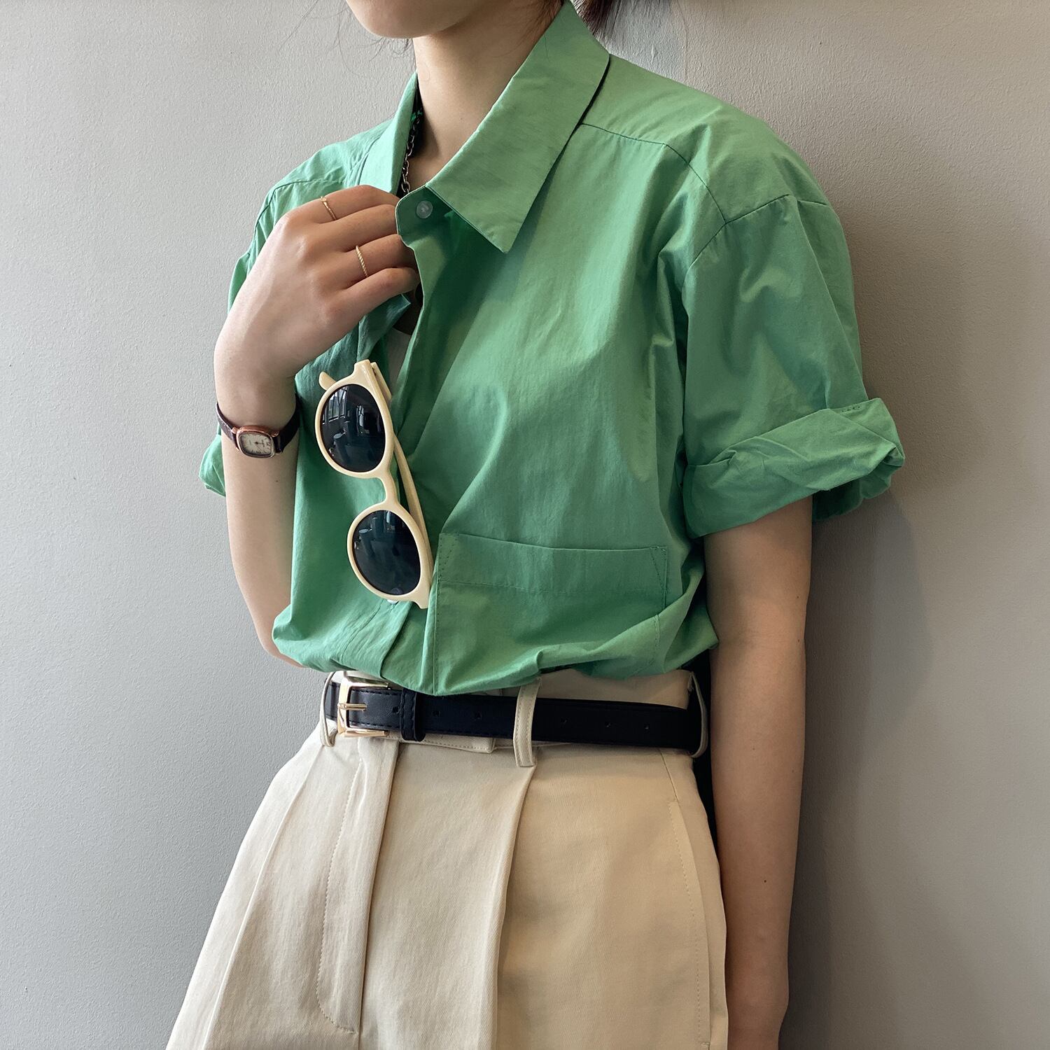 レディース トップス 前開き 半袖 ストリート ポケット ボタン アメカジ かわいい 大人可愛い きれいめ シンプル カジュアル おしゃれ かっこいい レトロ こなれ感 ラフ メンズライク マニッシュ ボーイッシュ ルーズ 抜け感 ベーシック アメリカン プレッピー アクティブ ナチュラル 無地 夏 学校 お出かけ アウトドア リゾート 旅行 休日 高原 ガーデン フェス アースカラー 重ね着 韓国 オルチャン 楽ちん 普段使い 着回し レイヤード 定番 M L 白 ホワイト 黄色 イエロー 緑 グリーン