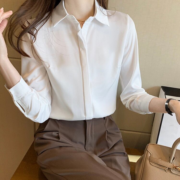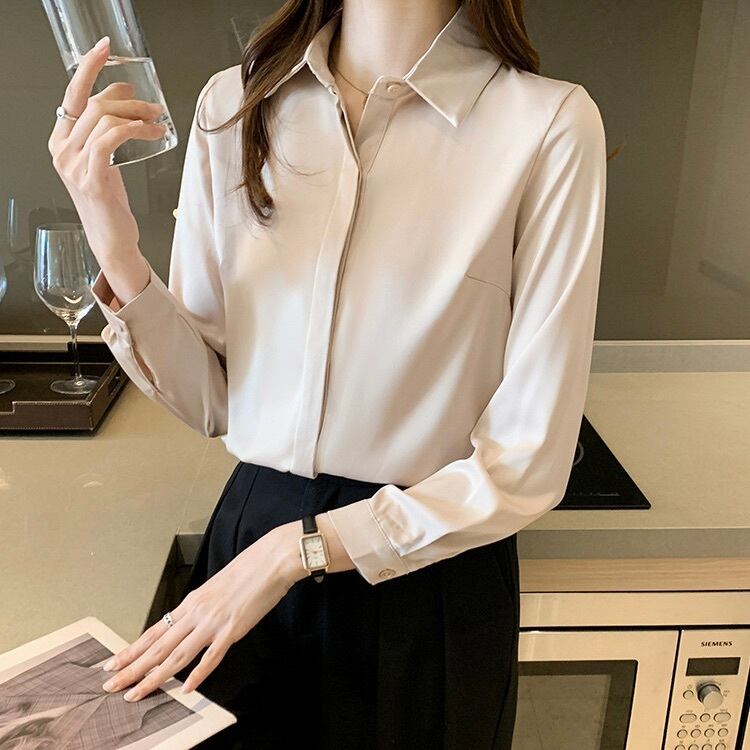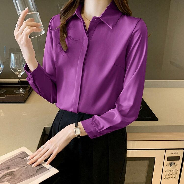 レディース トップス シャツ ブラウス 前開き 長袖 Vネック 襟付き 角襟 サテン きれいめ シンプル 上品 おしゃれ かっこいい レトロ こなれ感 エレガント モダン フォーマル 抜け感 キュート 都会的 ラグジュアリー クラシカル ベーシック ナチュラル 無地 春 秋 パーティー イベント レストラン 休日 重ね着 着回し レイヤード 定番 S M L XL 2XL 小さいサイズ 大きいサイズ 白 ホワイト 黒 ブラック 紫 グレー 黄色 イエロー ベージュ レッド 光沢 ベーシックカラー パープル