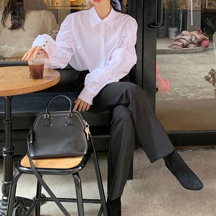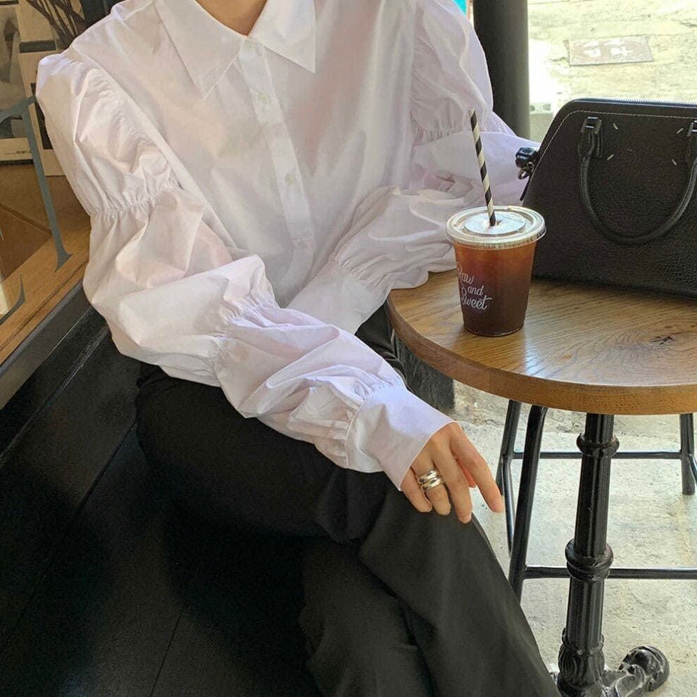 レディース トップス シャツ ブラウス 長袖 ボリューム袖 バルーン袖 フェミニン 前開き ヴィンテージ かわいい 大人可愛い おしゃれ かっこいい こなれ感 ラフ 個性的 クール モード系 エレガント 抜け感 ラブリー キュート 都会的 ラグジュアリー 無地 お出かけ パーティー イベント レストラン 女子会 休日 ショッピング コンサート ライブ 重ね着 韓国 オルチャン 普段使い 着回し レイヤード トレンド 流行 インスタ映え S M L XL 2XL 小さいサイズ 大きいサイズ 白 ホワイト