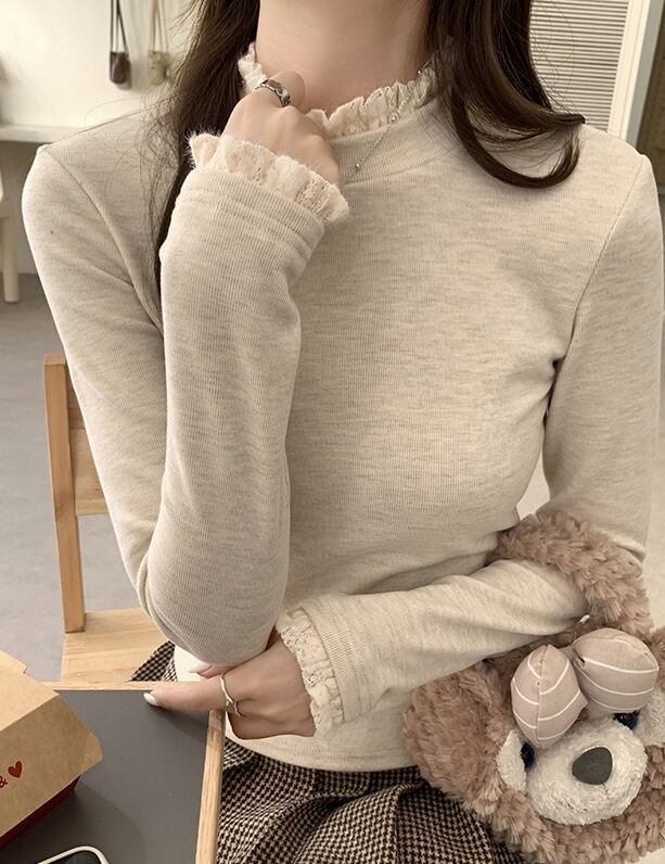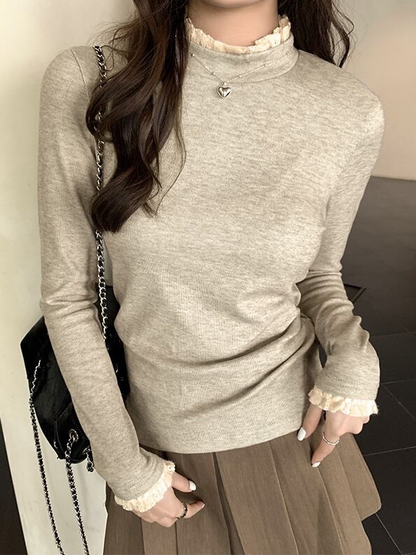 トップス カットソー 長袖 ハイネック プルオーバー ミディアム丈 萌え袖 レース 重ね着風 かわいい 大人可愛い きれいめ シンプル 上品 おしゃれ かっこいい カジュアル こなれ感 個性的 主役級 存在感 抜け感 ベーシック ナチュラル ガーリーフェミニン エレガント 無地 女性用 レディース ママ OL 通勤 オフィス 学生 通学 デート お出かけ お泊まり 女子会 旅行 休日 カフェ ショッピング イベント パーティー 二次会 重ね着 普段使い デイリー 着回し S M L XL モテ トレンド