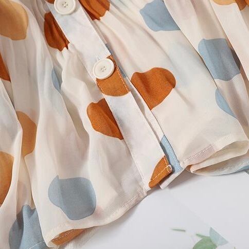 レディース トップス シャツ ブラウス 長袖 ボリューム袖 バルーン袖 Vネック オーバーサイズ フェミニン ストリート シフォン 前開き ボタン かわいい 大人可愛い カジュアル おしゃれ レトロ こなれ感 ラフ ガーリー ルーズ 抜け感 ヴィンテージ ラブリー キュート アクティブ ロマンティック ナチュラル ドット柄 水玉 春 秋 お出かけ 重ね着 お揃い 双子 韓国 オルチャン 楽ちん 普段使い 着回し レイヤード ゆったり ゆる フリーサイズ 白 ホワイト 黒 ブラック オフホワイト オレンジ