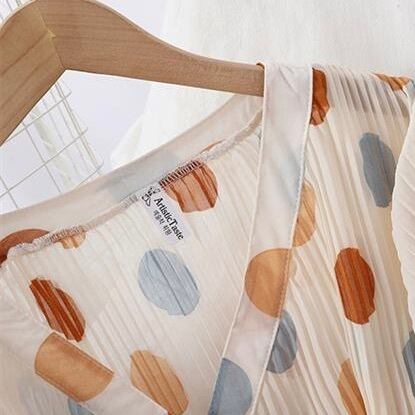 シフォン素材の軽やかさとドット柄のヴィンテージ感でこなれたおしゃれに。