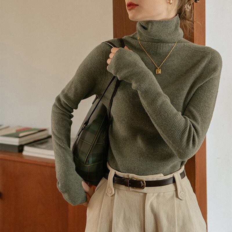 レディース トップス ニット セーター プルオーバー インナー レギュラー丈 タックイン 裾イン 長袖 サムホール 指穴 ハイネック タートルネック スリム 細身 スマート リブ リブニット 伸縮性 コンサバ 大人可愛い きれいめ シンプル おしゃれ レトロ こなれ感 クール クラシカル スタイリッシュ 無地 秋 冬 20代 30代 40代 お出かけ 公園 休日 ショッピング 重ね着 韓国 コーデ 暖かい 普段使い 着回し レイヤード S M L 白 ホワイト 黒 ブラック レッド グリーン モスグリーン