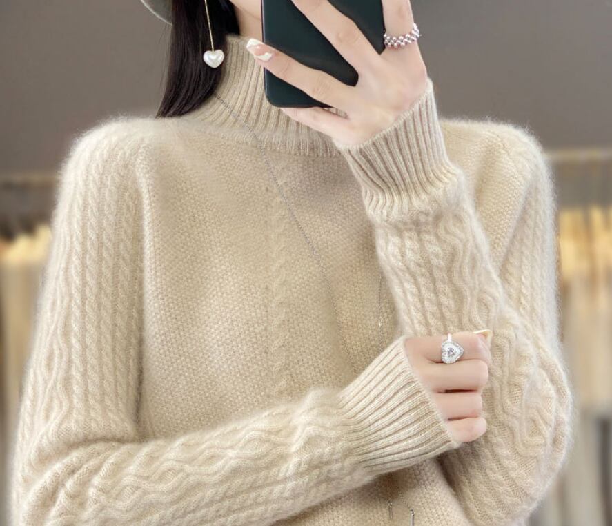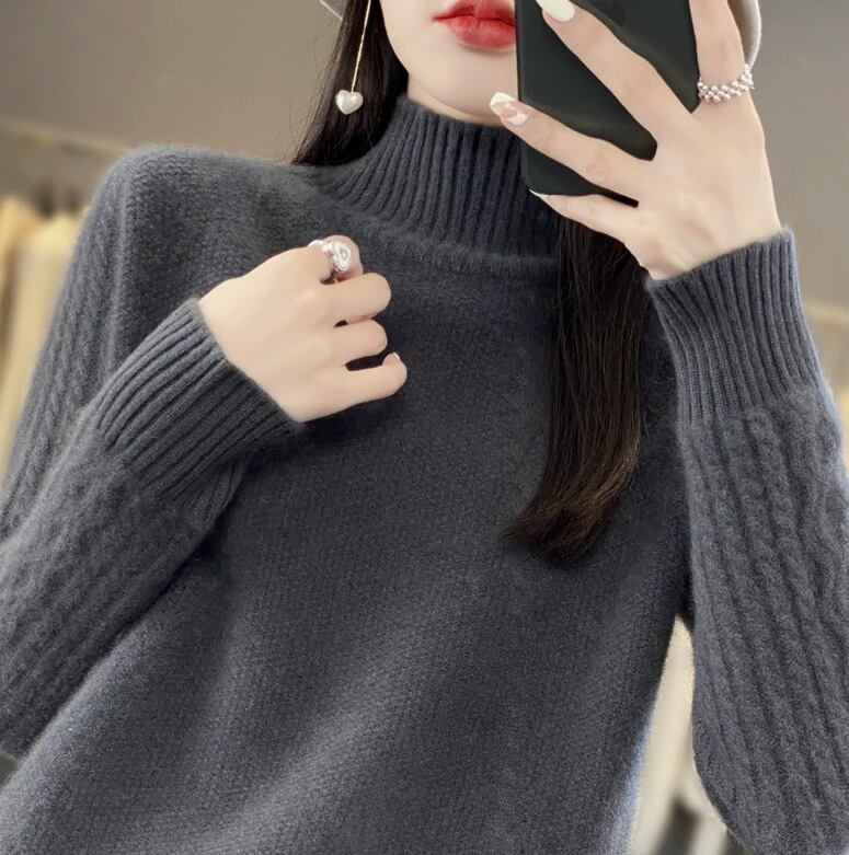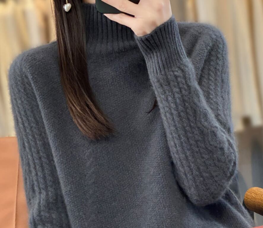 普通丈で、着回しの効くハイネックプルオーバーは、厚手で温かみがあり、秋冬のコーディネートにピッタリです。