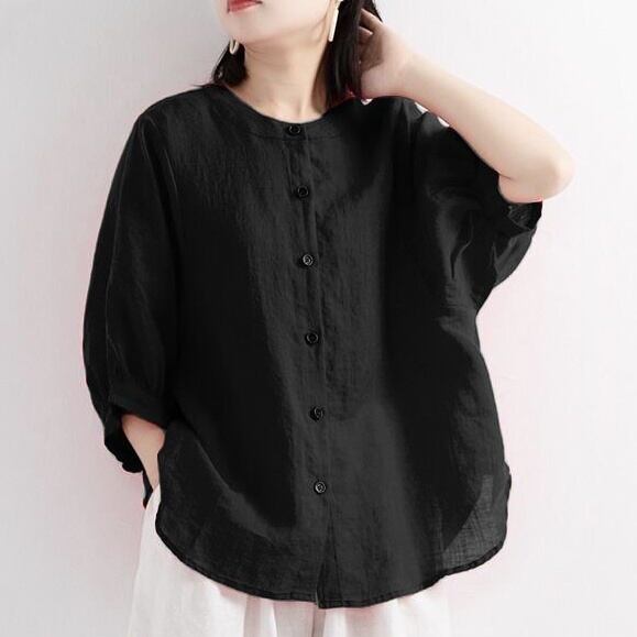 トップス シャツ 5分袖 ラウンドネック 前開き ボタン ミディアム 薄手 かわいい 大人可愛い きれいめ シンプル 上品 おしゃれ かっこいい カジュアル こなれ感 個性的 主役級 存在感 抜け感 春 夏 ベーシック ナチュラル クール メンズライク 無地 女性用 レディース ママ OL 通勤 オフィス 学生 通学 デート お出かけ お泊まり 女子会 旅行 休日 カフェ ショッピング イベント パーティ 二次会 ディナー 普段使い デイリー 着回し M L XL 2XL 3XL トレンド モテ