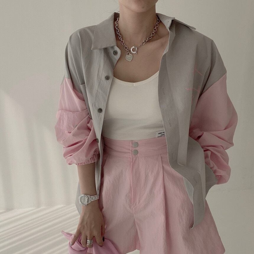 レディース トップス シャツ 上着 羽織 前開き ミディアム丈 タックイン 裾イン 長袖 ゴム袖 襟付き ポロカラー ストレート フェミニン ストリート サイドスリット ボタン アメカジ 切り替えデザイン 配色 コットン シンプル カジュアル おしゃれ かっこいい こなれ感 ラフ ルーズ 無地 プリント 英字 春 秋 ママ 10代 20代 30代 40代 学生 通学 お出かけ アウトドア キャンプ 旅行 公園 女子会 休日 ショッピング 韓国 コーデ フリーサイズ ブラック カーキ ピンク グリーン 緑