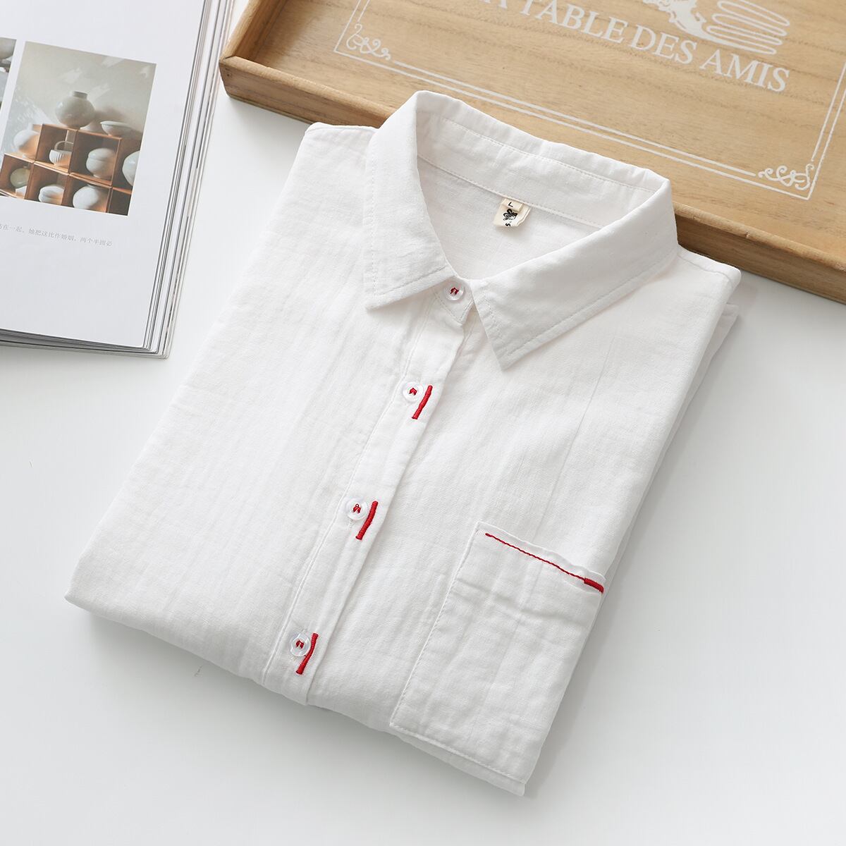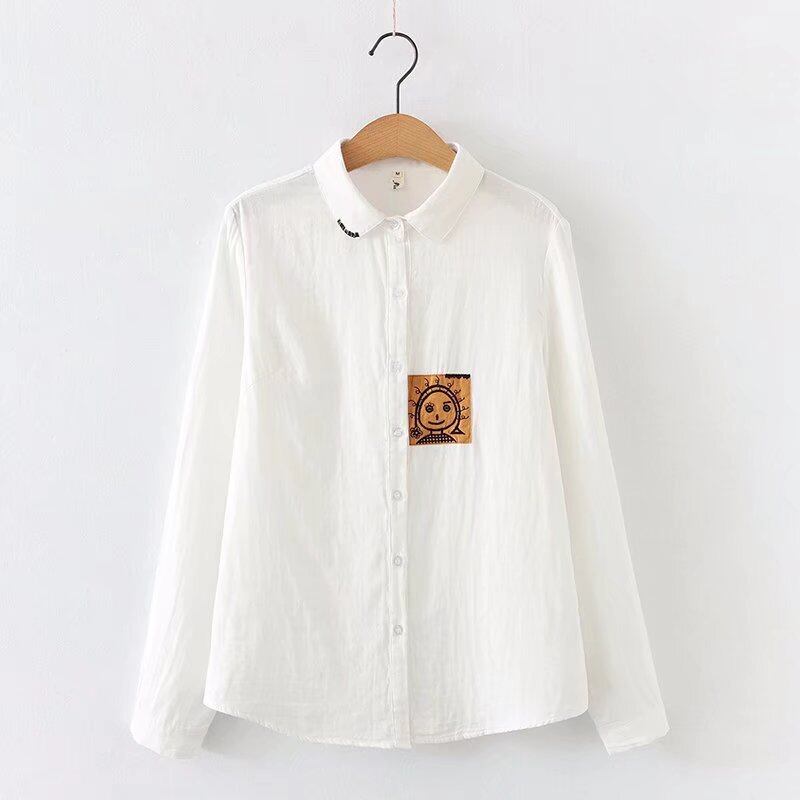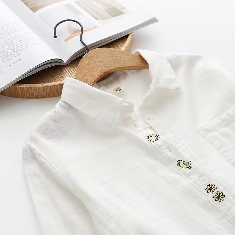 トップス シャツ 長袖 襟付き 前開き ボタン ミディアム丈 薄手 刺繡 かわいい 大人可愛い きれいめ シンプル 上品 おしゃれ かっこいい カジュアル こなれ感 個性的 主役級 きちんと 存在感 抜け感 春 夏 ベーシック ナチュラル キュート ガーリー 清楚 無地 女性用 レディース ママ OL 通勤 オフィス 学生 通学 デート お出かけ お泊まり 女子会 旅行 休日 カフェ ショッピング イベント 普段使い ディナー デイリー 着回し 重ね着 レイヤード M L XL 2XL トレンド モテ