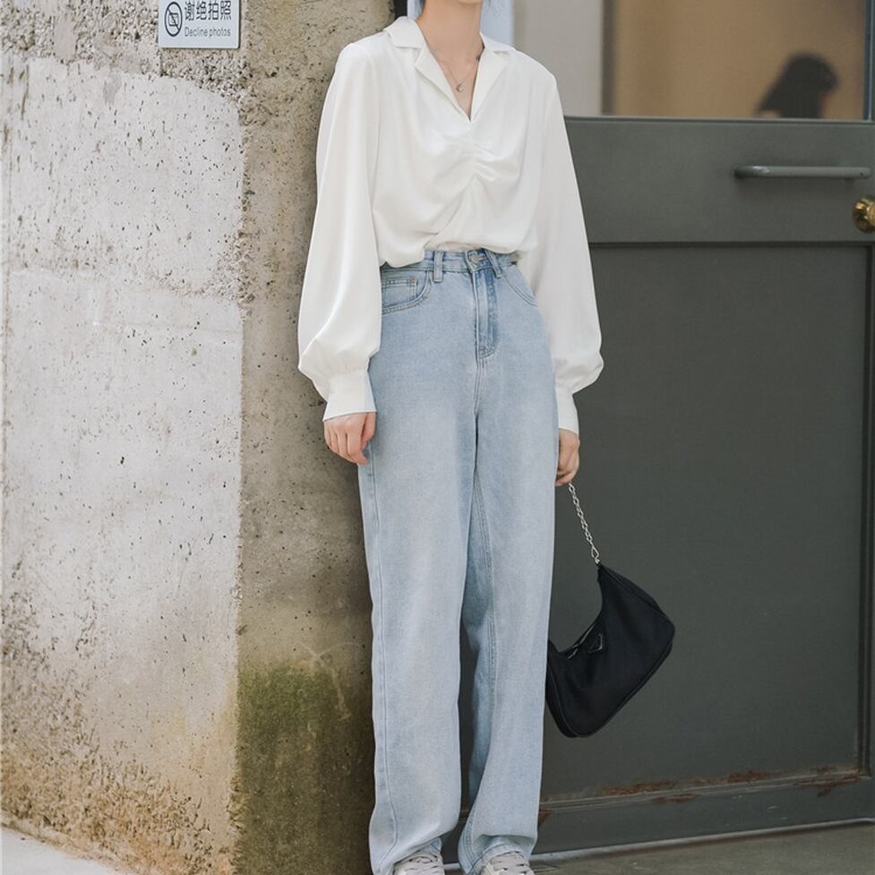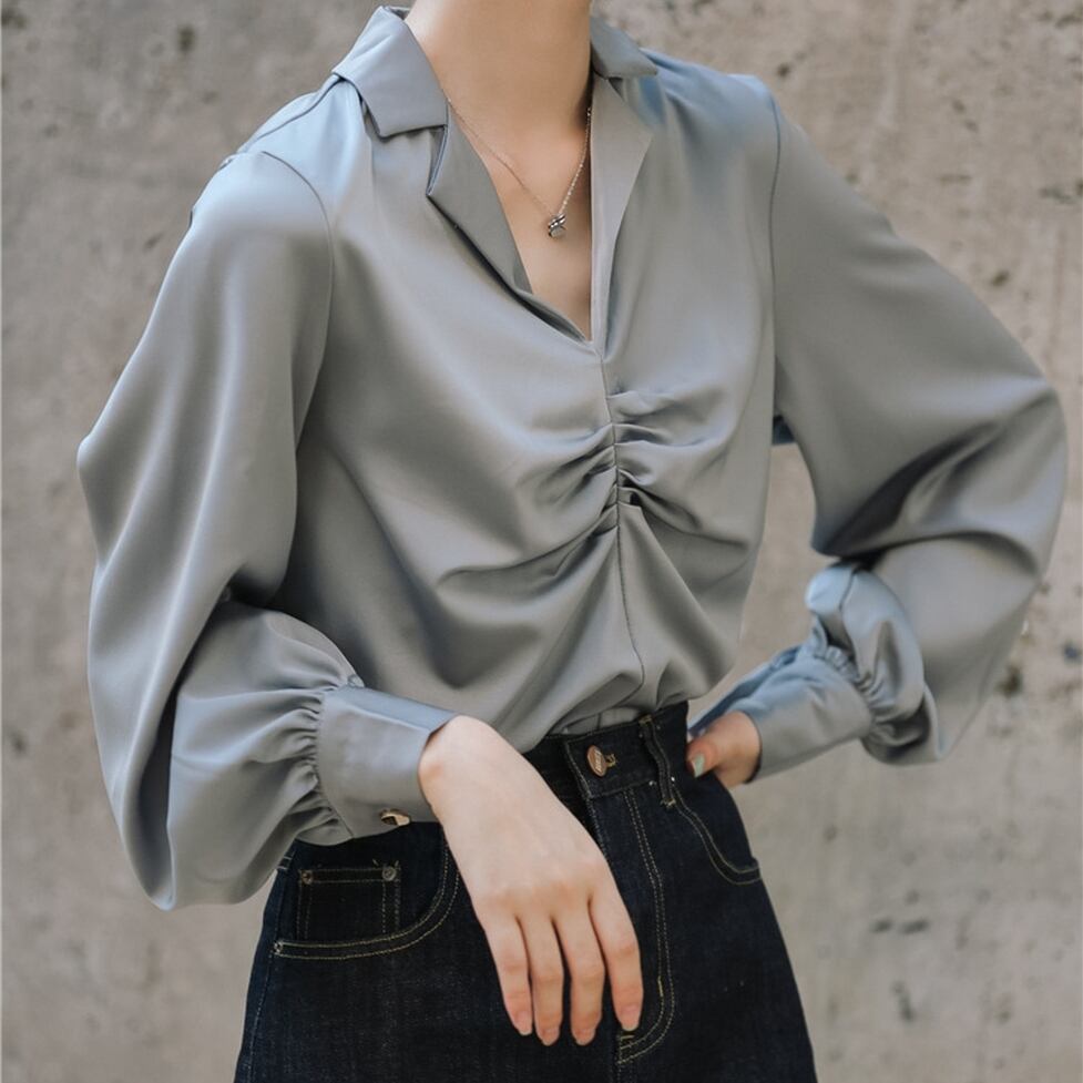 フロントのギャザーに程よいバルーンスリーブがバランスの良いコーデに仕上げてくれる大人シンプルなシャツブラウス。どう転ばせてもブレない好感度でキレイなままさらに洗練度が高く。高揚感が得られるメリットがあるオシャレの軸になるアイテム
