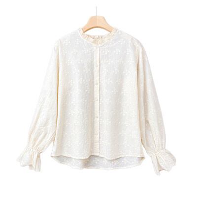 トップス シャツ 長袖 ハイネック フリル 前開き ボタン ミディアム丈 刺繡 かわいい 大人可愛い きれいめ シンプル 上品 おしゃれ かっこいい カジュアル こなれ感 個性的 主役級 きちんと 存在感 抜け感 春 夏 ベーシック ナチュラル キュート フェミニン ガーリー 女性用 レディース ママ OL 通勤 オフィス 学生 通学 デート お出かけ お泊まり 女子会 旅行 休日 アウトドア カフェ ショッピング イベント 普段使い デイリー 着回し 重ね着 M L XL 2XL トレンド モテ